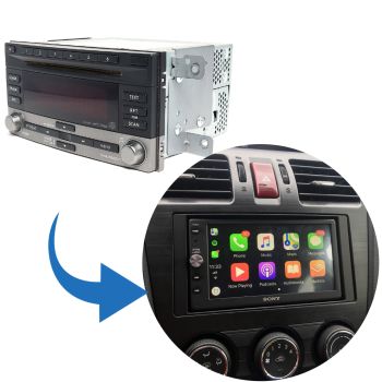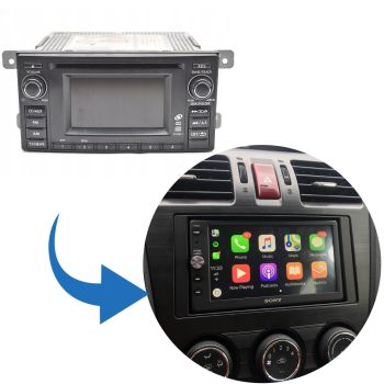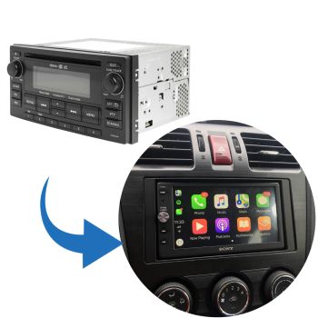 2-DIN radioadapter for å bygge om interiøret i en spesifikk bilmodell til standard DIN-hull slik at man kan montere en valgfri ettermarkedsradio i samme størrelse istedenfor den originalmonterte radioen.