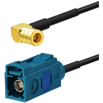 Antenneadapter, FAKRA Z (hun) - SMB (han). Antenneadapter som f.eks kan benyttes til å kunne bruke DAB-antenne med SMB-kontakt opp i mot en DAB-tuner som har Fakra-kontakt. 10 cm.