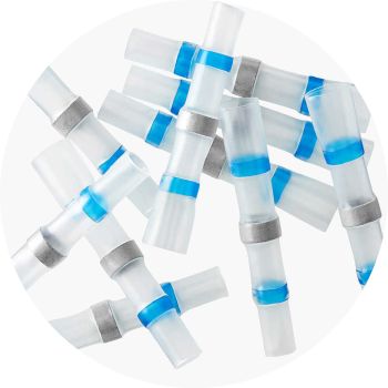 Profesjonelle skjøtehylser med krympestrømpe og tinn for en trygg og vanntett skjøt. Plasthylsen er av gjennomsiktig krympeplast med varmesmeltende lim i begge ender. I midten av hylsen ligger en ring med loddetinn og fluks.