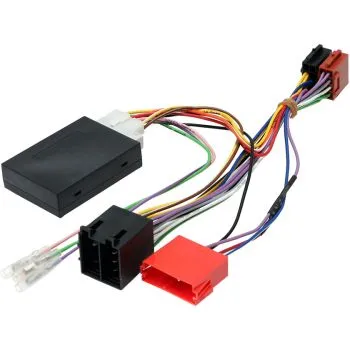 Kombinert rattfjernkontroll-adapter og ISO-overgang med elektronikk som kommuniserer mellom bilens elektronikk og en uorginal bilradio som støtter forskjellige funksjoner. Se liste over funksjoner adapteren bevarer i bilen ved bytte av radio. Passer følgende bilmodeller: