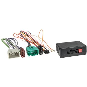 Kombinert rattfjernkontroll-adapter og ISO-overgang med elektronikk som kommuniserer mellom bilens elektronikk og en uorginal bilradio som støtter forskjellige funksjoner. Se liste over tilgjengelige funksjoner adapteren bevarer i bilen ved bytte av radio.